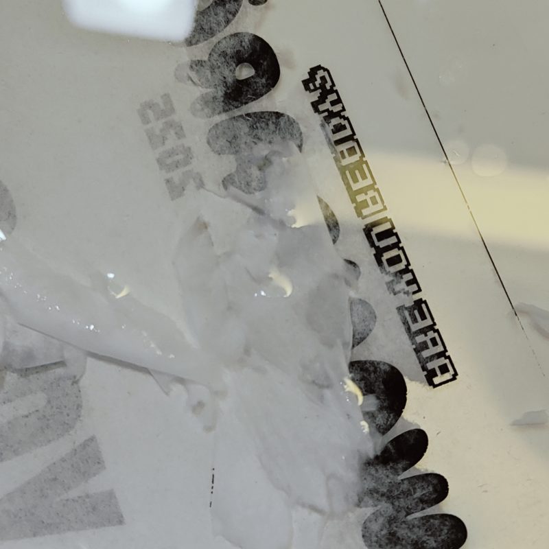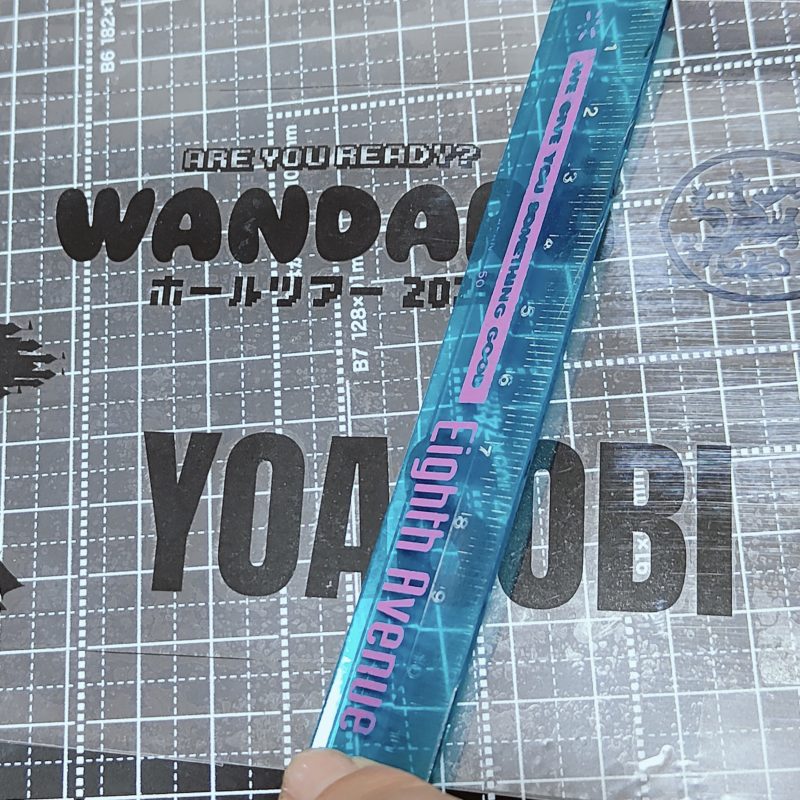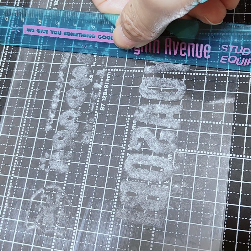 定規で擦って密着させます。結構空気入ってますけど、ペンライトの中に入れれば気にならなくなるのでここも自己満足の世界だと思っています。