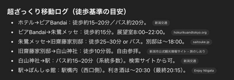 2025年9月5〜6日、新潟旅行に行きました。初日は、Galaxyさまからのご提供いただいたYOASOBIのライブでしたが、翌日は終日フリーだったので旅行プランをChatGPTに立ててもらいました。