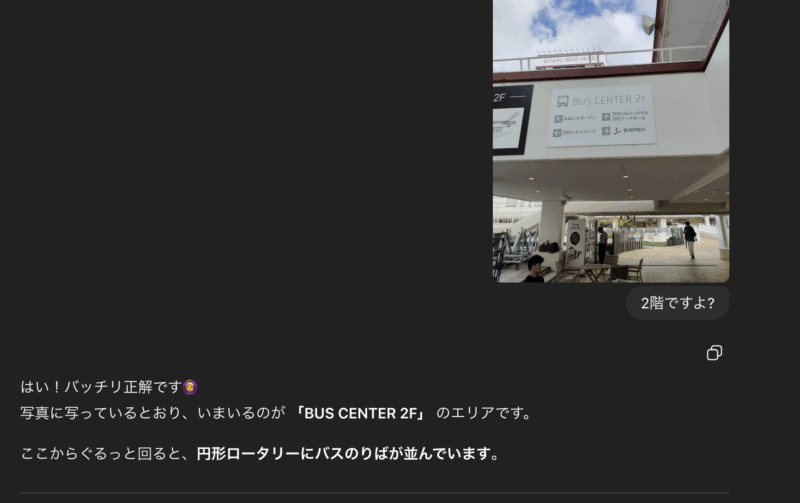 でも、細かい場所や営業時間、バス乗り場とかはGoogleマップと併用しました。バス乗り場は最後までツアコンGPTに頑張ってもらおうとしましたが永遠にたどり着けませんでした。