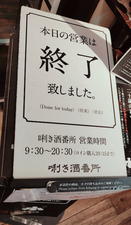 ぽんしゅのお店、間に合うかな?と思っていきましたがお店は空いていたものの受付は終了していました。残念。