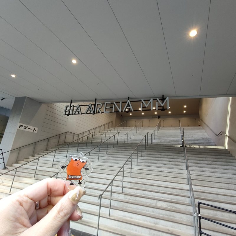 ぴあアリーナMMといえばこの階段のイメージです。ポレンジさんも早速階段に立っているふりをされております。かわいい。