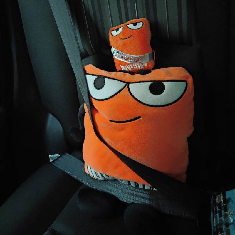 カウントダウンライブで、終夜運転がないため友達と車を借りて横浜に向かいました。横浜なのに気分は遠征です。大小のポレンジくんと一緒に出発です。