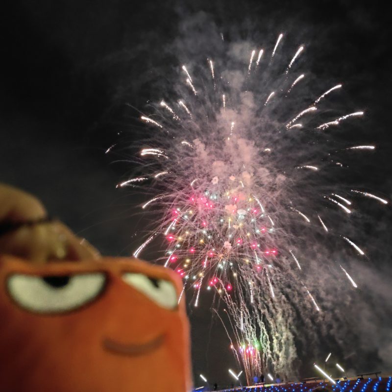 そこでお友達とはぐれて、大さん橋の花火大会に行きました。例年はカウントダウンの時に花火が上がったのかな? 2025年は19時からでした。