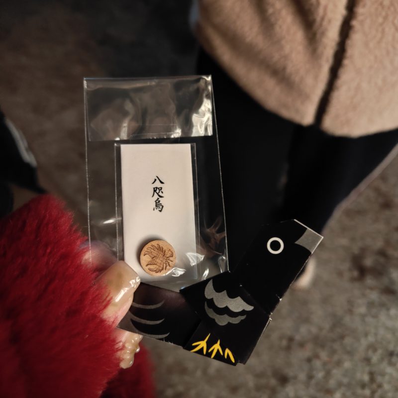 このあと熊野神社へ初詣に行きました。カラスがモチーフなのかな?おみくじもカラスでした。大吉でした。この丸いカラスさんはお財布に入れました。